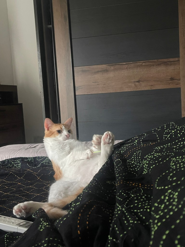 Today was a lazy day, so I stayed in bed a little longer than usual and read for an hour. As soon as I turned on my kindle, my reading partner showed up…